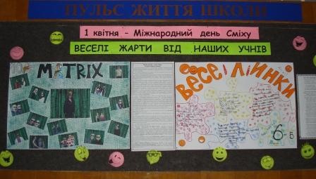1 квітня 2015 р. у школі цікаво пройшов "День сміху". Щоб день пройшов незвично і добре запам"ятався, було проведено свято "День кімнатних капців". Учні старших класів "пішли далі" і доповнили кімнатні капці домашнім одягом.