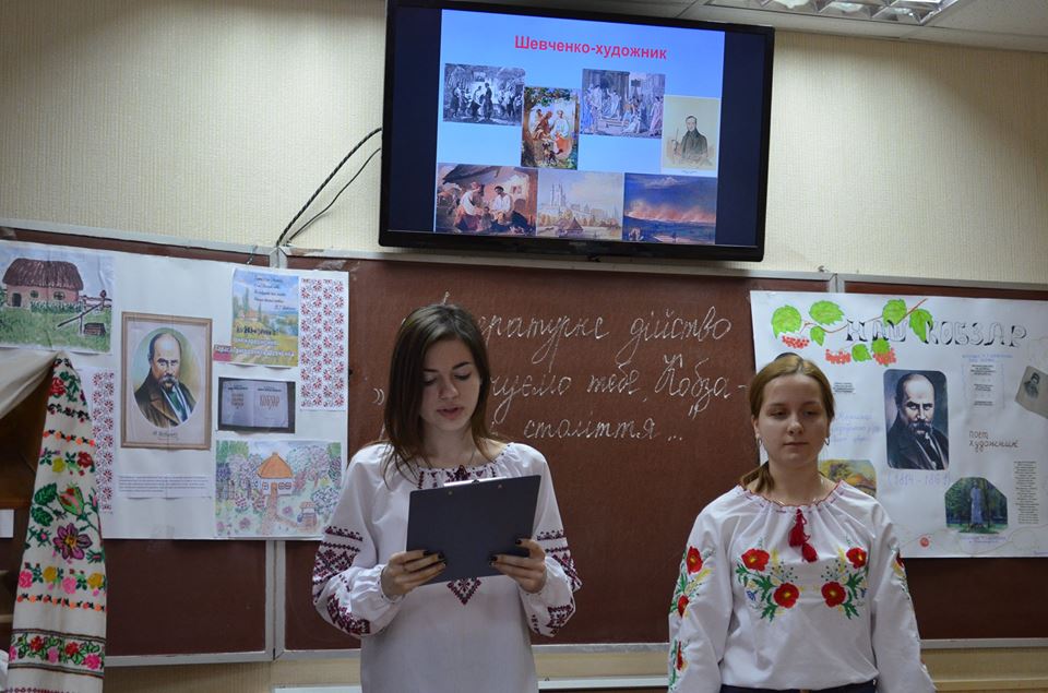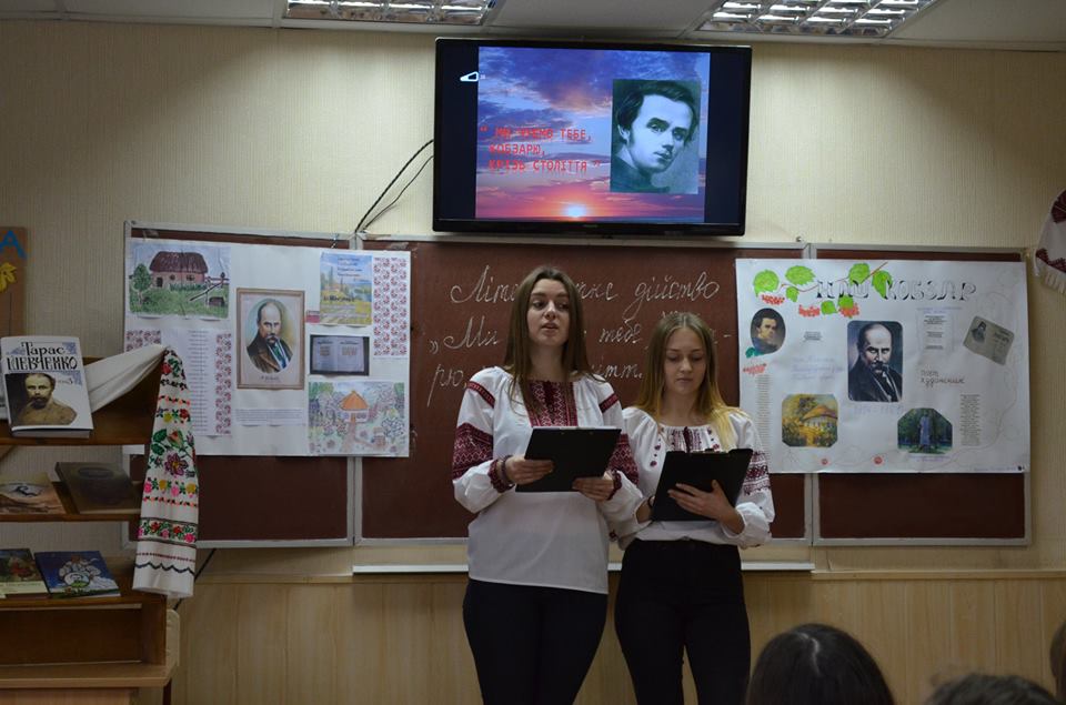 Напевне, в Україні не знайдеться жодної людини, яка у своєму житті хоча б раз не перегорнула сторінок «Кобзаря» Тараса Шевченка. Творчість цього поета можна не любити, можна критикувати, можна ставитися до неї із великою любов’ю… У будь-якому випадку байдужим вона не залишає нікого.Учні нашої школи також не залишились осторонь. З 06.03.2017 р. по 10.03.2017 року було проведено ряд заходів, присвячених пам"яті Т.Г.Шевченка. В 11-А класі пройшло літературне дійство "Ми чуємо тебе, Кобзарю, крізь століття..." під керівництвом учителя української мови та літератури Карпенко Оксани Іванівни. Учні декламували вірші Великого Кобзаря. Лазарева Катерина та Федис Анастасія задушевно виконали пісні на слова Т.Г.Шевченка, Мох Аліна прочитала власний вірш.