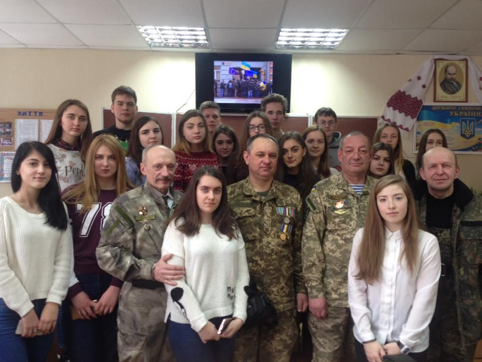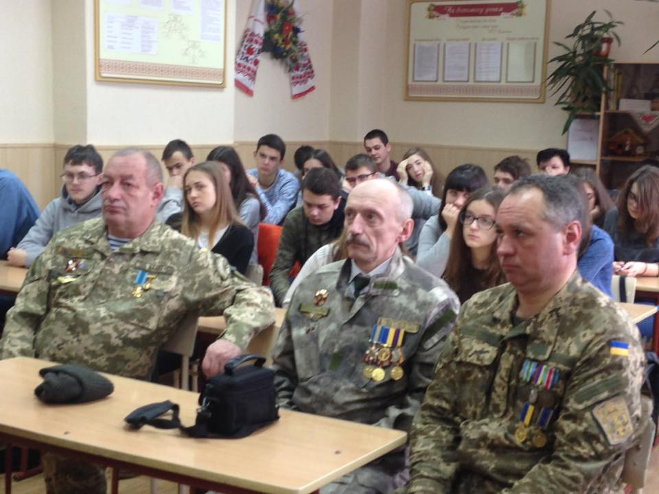 20 лютого 2017 року в школі відбулася зустріч учнів школи із учасникми бойових дій, а саме: колишнім випускником школи - учасником АТО та війни в Афганістані, керівником Хмельницької Спілки учасників бойових дій, капітаном Збройних сил України Рибцовим Андрієм Івановичем, нагородженим "за особисту мужність і героїзм, виявлені у захисті державного суверенітету та територіальної цілісності України, вірність військовій присязі під час російсько-української війни" орденом Богдана Хмельницького III ступеня (10.06.2015)., учасником бойових дій за Дебальцеве Чесановським Андрієм Францовичем; учасником добровольчих батальйонів "Азов" та "Правий Сектор" Пашкевичем Ігорем Олексійовичем, учасником Революції Гідності, добровольчого батальйону АТО Климчуком Олександром Васильовичем.